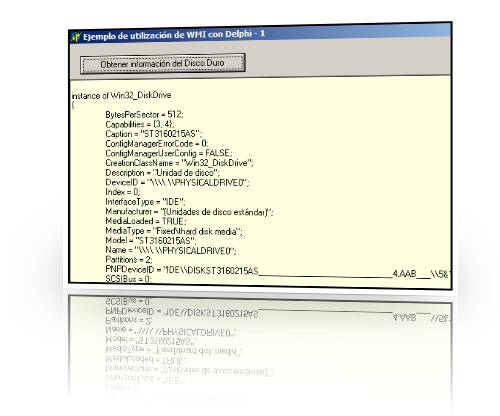 Antes de acabar esta entrada (espero poder publicar más, ya que el tema me parece muy interesante) podemos ver cómo utilizar la WMI para acceder a los datos del disco duro. En este caso, para simplificar vamos a acceder a los datos del primer disco (DiskDrive) existente en el sistema. Para ello se utiliza la clase: Win32_DiskDrive